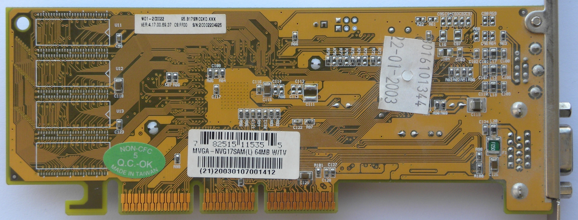 MVGA GeForce4 MX440 SE - This card has 64MB DDR memory connected with 64-bit bus, clocked at 333MHz, memory bandwith is 2700MB/s. GPU is clocked at 250MHz.